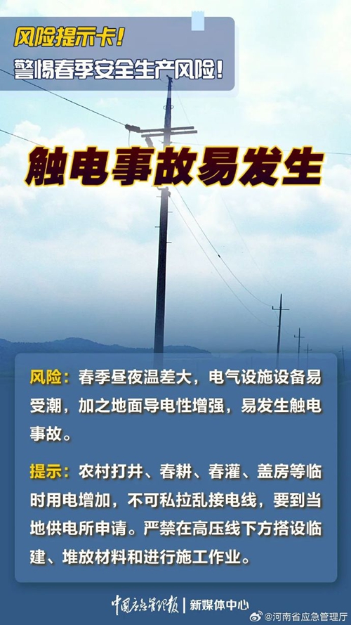 春季天氣多變,各行業(yè)復工復產(chǎn)步入正軌,生產(chǎn)節(jié)奏不斷加快的同時,應結(jié)合春季安全生產(chǎn)特點及時落實各項安全防范措施 ???。