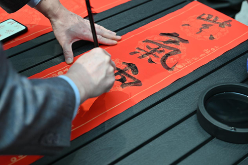 壓紙、蘸墨、揮筆、走字……在鼎盛美寓和開元美寓的共享空間里,書法家們揮毫潑墨、筆走龍蛇,一個個寓意吉祥的“福”字、一副副飽含美好祝福的春聯(lián)紛紛呈現(xiàn)在大家眼前,為即將到來的蛇年春節(jié)增添了濃濃的喜慶氛圍。