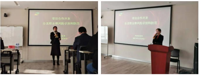 培訓(xùn)由集團風(fēng)控法務(wù)部部長邵淑毅主講,培訓(xùn)課題為《項目合作開發(fā)全流程法律風(fēng)險識別和防范》。邵部長結(jié)合豐富的房地產(chǎn)項目合作開發(fā)投資及法務(wù)管理風(fēng)控經(jīng)驗,聚焦標的項目、目標公司、交易過程三個維度,詳細講解了標的項目權(quán)屬爭議、開發(fā)可行性、目標公司股權(quán)瑕疵、治理結(jié)構(gòu)、項目鎖定、資金安全等共計24項重大風(fēng)險。從全流程風(fēng)險防范的角度,提出四個方面的應(yīng)對措施:充分全面的盡職調(diào)查、合理的交易方案、嚴謹規(guī)范的合同文本、有效的履約管理。最后,邵部長提出集團法務(wù)及投資人員在工作中應(yīng)務(wù)必盡心盡責、建立全流程把控理念,在項目風(fēng)險防控中創(chuàng)造價值。