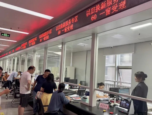 7月3日起,鄭州市住房保障和房地產(chǎn)管理局CBD大廳“以舊換新”專(zhuān)區正式開(kāi)始開(kāi)展業(yè)務(wù),設置4個(gè)服務(wù)專(zhuān)窗辦理“以舊換新”業(yè)務(wù)。同時(shí),為讓有“以舊換新”意愿的群眾少跑腿,房屋交易中心將服務(wù)延伸到企業(yè),在收購主體城發(fā)集團設置“以舊換新”網(wǎng)簽專(zhuān)區,開(kāi)展“以舊換新”網(wǎng)簽備案等業(yè)務(wù)。